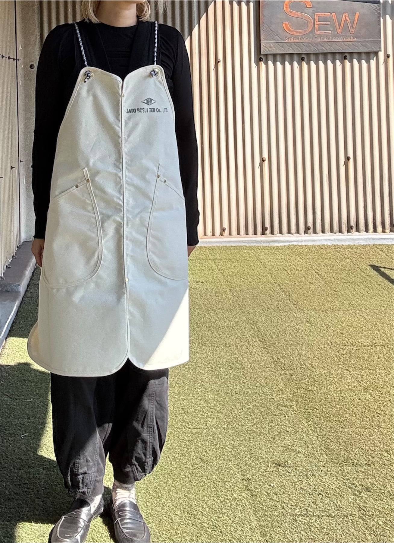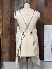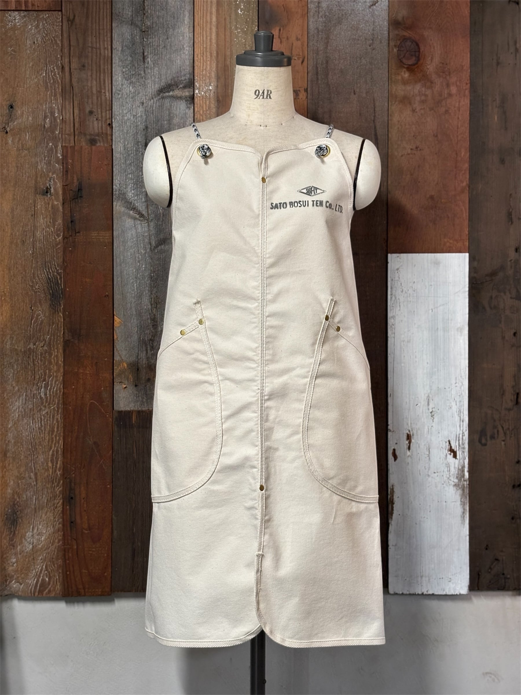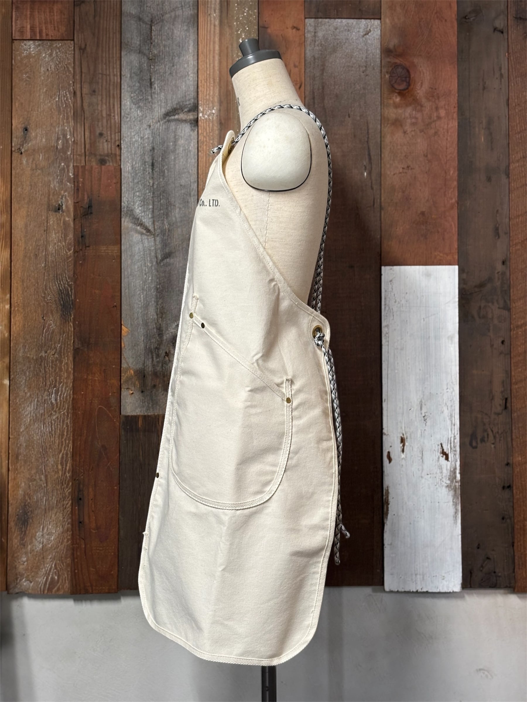 丈夫なキャンバス素材を使用したこのエプロンは、使い込むほどに風合いが増し、