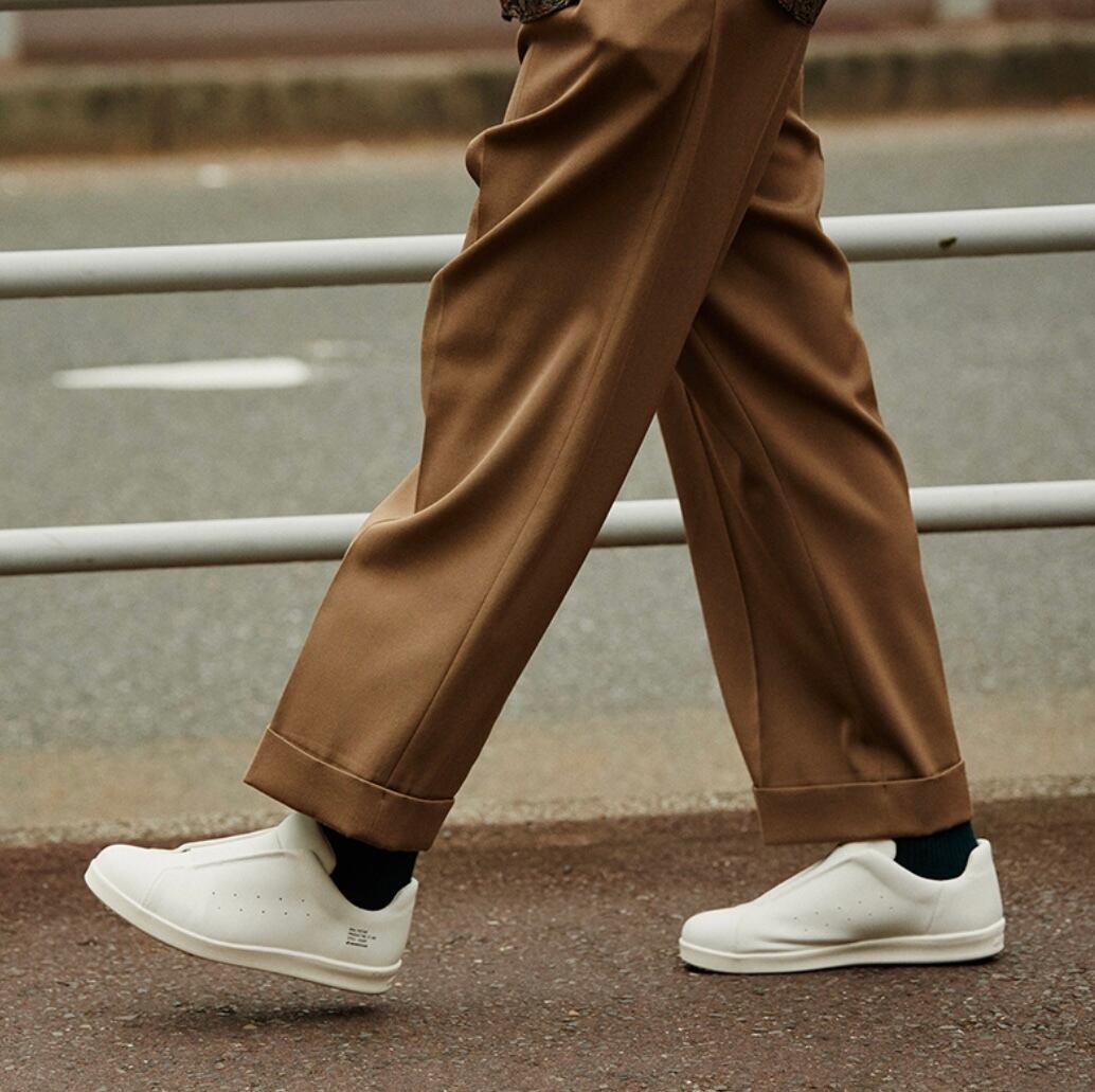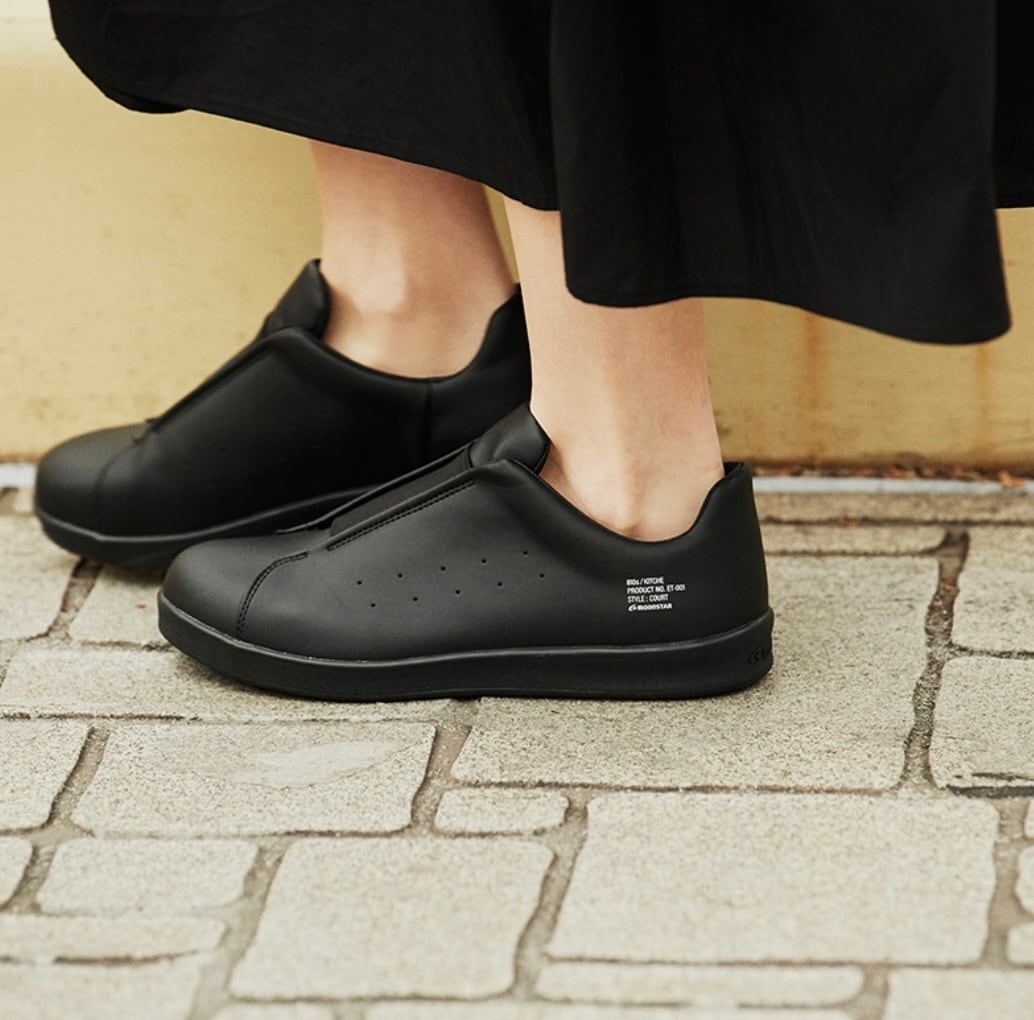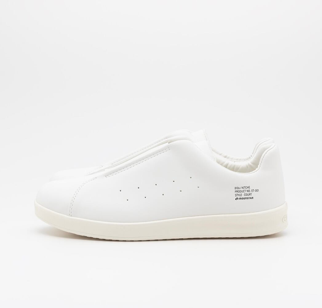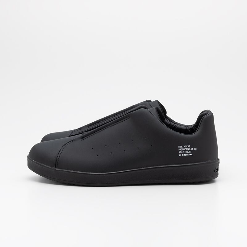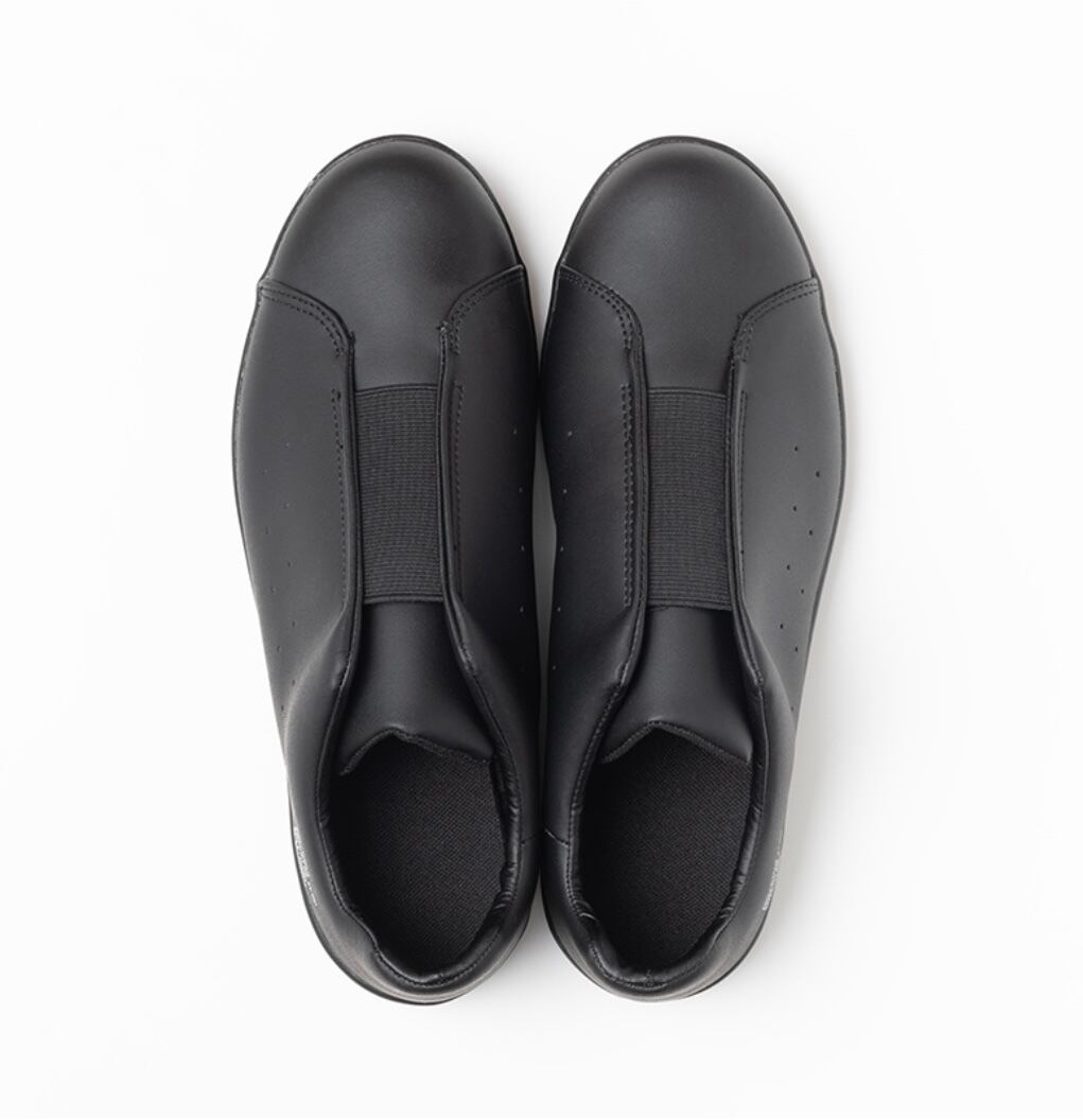 厨房や食品工場で使われるキッチンシューズをデイリーユースに。油や水に濡れた床面に吸い付くマルチストッパーソールや手入れが楽なアッパー素材を採用。ミニマルに仕上げたコートタイプ。